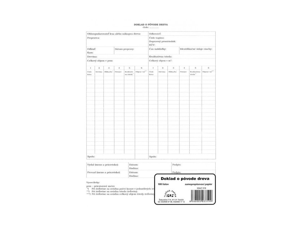 Doklad o pôvode dreva A4 - samoprepis