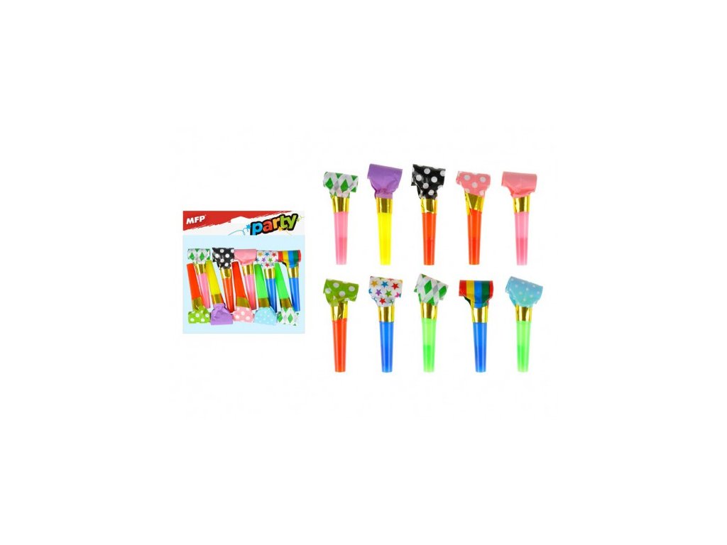 Papierová trúbka nesmie chýbať na žiadnej party. Papierová trúbka, súprava 10 ks v rôznych farbách a motívoch. Balené vo vrecúšku so závesom. Tento výrobok je zdravotne neškodný. Dĺžka trúbky: 23 cm Nevhodné pre deti do 3 rokov. Nebezpečenstvo vdýchnutia a zhltnutia malých častíc. Rozmer: 180mm x 100mm x 2mm (Š x V x H)Dodatočné parametre