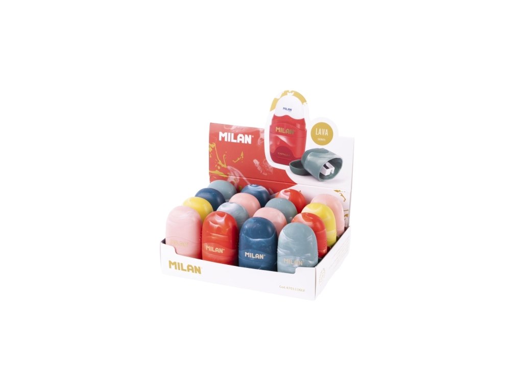 Kombinácia strúhadla so zásobníkom a gumy v jednom (guma je schovaná pod vrchnákom). ostrá a odolná uhlíková čepeľ strúhadla so systémom, ktorý zabraňuje oddeleniu čepele od tela strúhadla mäkká oválna guma z syntetického kaučuku špeciálna edícia Láva je inšpirovaná sopečnými erupciami a pohybom roztavenej horniny v 4 farbách farby evokujú rôzne odtiene tohto geologického fenoménu: modrá, žltá, červená, zelená a ružová, v kombinácii so zlatou, ktoré vytvárajú sofistikovaný vizuálny efekt Cena je za 1 kus. Kolekcia MILAN Lava Výrobca MILAN