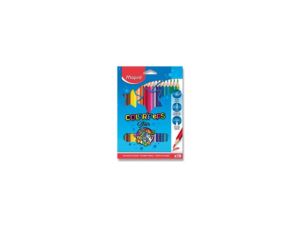 Súprava 18 kusov farebných ceruziek s veselým dizajnom. Ergonomické pastelky Maped Color'Peps majú trojhranné telo, mäkkú odolnú tuhu a jasné farby. Hrúbka tuhy 2,9 mm. trojhranné telo mäkká, odolná tuha jasné farby dĺžka pastelky cca 17 cm hrúbka tuhy 2,9 mm