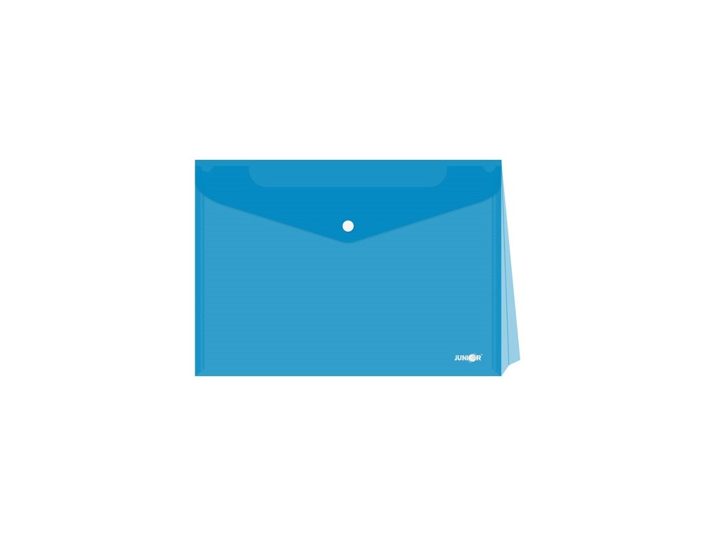 Obal na dokumenty A4 so zapínaním na patentku a rozšíriteľným dnom, vyrobený z kvalitného priehľadného PP materiálu, priehľadný/modrý. Výrobca JUNIOR bal / ks 12 kart. / bal 240 Rozmery 330x260x30 mmDiskusia