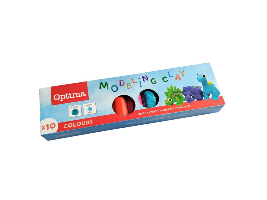 Plastelína Optima v balení 10 farieb, hmotnosť 200 g