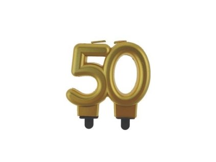 Sviečka narodeninová číslica 50 metalická zlatá 8 cm