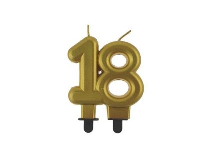 Sviečka narodeninová číslica 18 metalická zlatá 8 cm