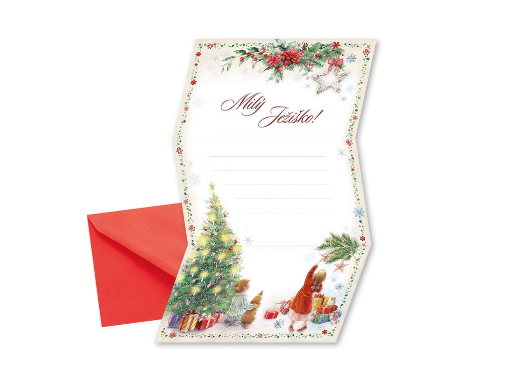 List Ježiškovi. * krásne ilustrovaný listový skladací papier pre deti i dospelých, ktorí chcú Ježiškovi oznámiť svoje priania * dopis môžete jednoducho položiť za okno alebo ho poslať poštou priamo Ježiškovi * súčasťou balenia je aj farebne zladená obálka * originálne technológie spracovania od spoločnosti ARGUS - "Na detaile záleží!"Buďte prvý, kto napíše príspevok k tejto položke.