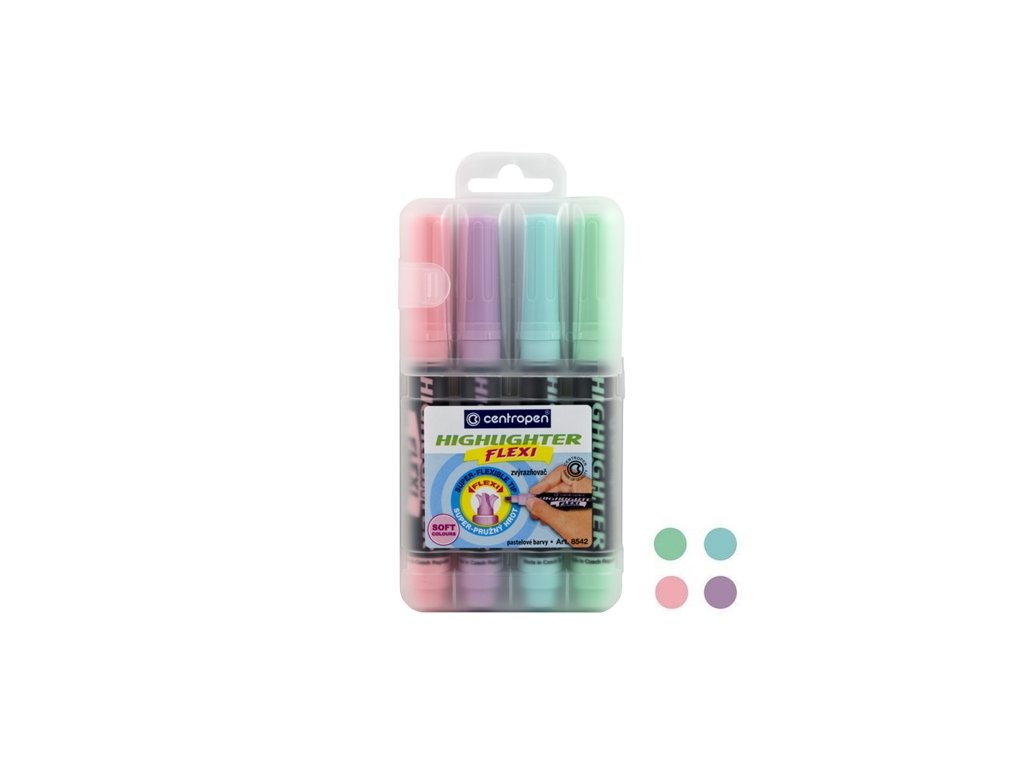 Zvýrazňovač CENTROPEN 8542 FLEXI PASTEL - sada 4 ks
